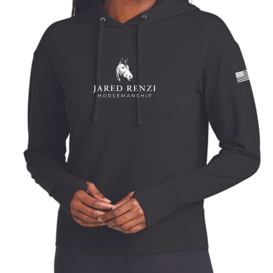 Whether you're riding patterns in the ring or heading out for morning barn chores, the JR Performance Hoodie is made for women of unwavering faith, strength, and courage. With a flattering athletic fit and breathable, lightweight fabric, it is designed to keep pace with your hard-working lifestyle every step of the way. Finished with stripes and stars on the left sleeve, it honors values that go beyond the barn — God, grit, and the great American spirit.